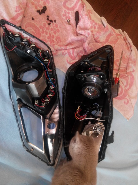 Ну после всех подготовительных работ самое сложное. Разборка фар.