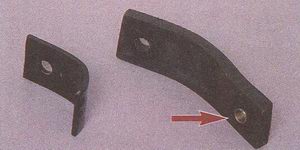 4. Под уголком в отверстии ремня установлена дистанционная втулка. При установке нового ремня деформированную или поврежденную коррозией втулку следует заменить.