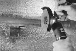 4. Распиливаем трубу по нанесенной дополнительной метке с помощью болгарки.