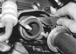 9. Установка всех деталей происходит в порядке, обратном снятию. Установите новую прокладку между выпускным коллектором и приемной трубой. Соединение элементов системы выпуска отработавших газов выполняйте специальными обжимными муфтами, имеющимися в продаже.