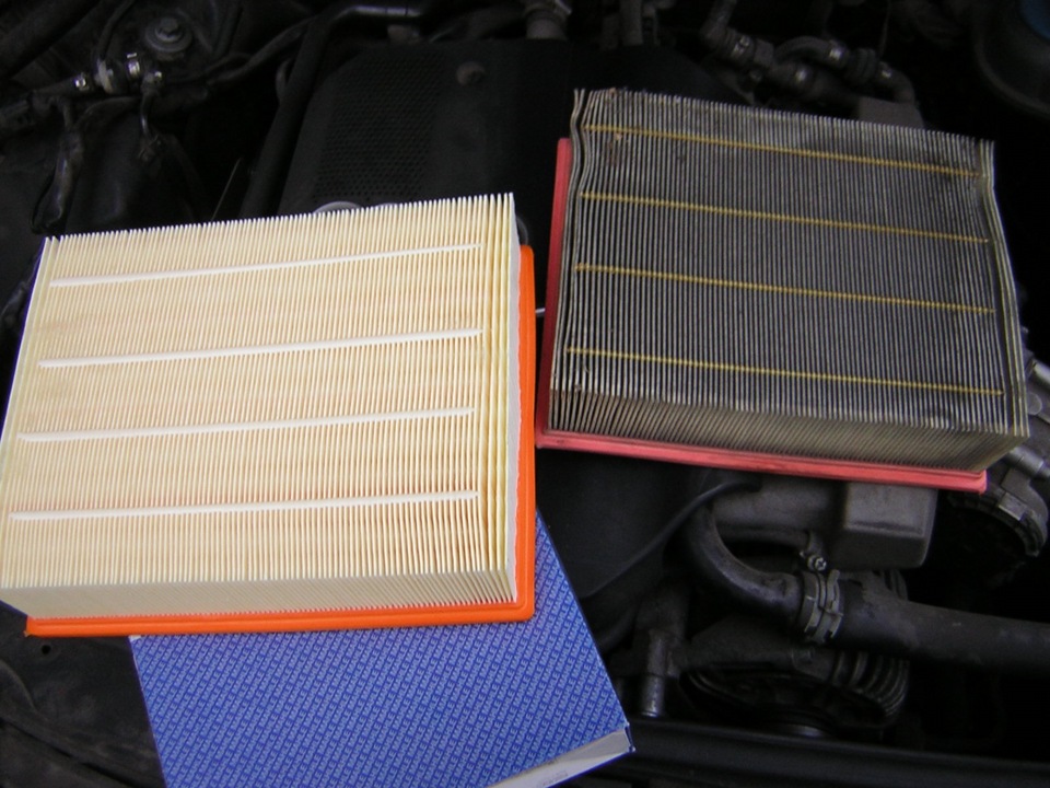 5. Наклоняем верхнюю часть воздушного фильтра в направлении двигателя, отсоединяем внизу и вынимаем наверх.