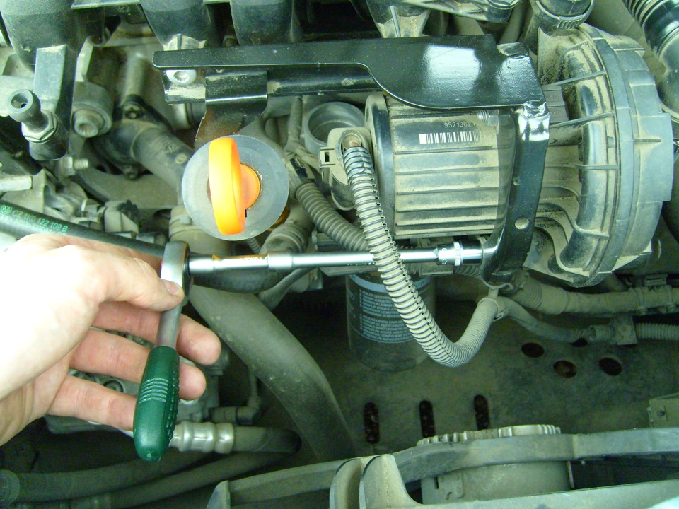Для того чтоб отвернуть третью свечу, и чтоб было больше доступа к четвертой, открутил дополнительный нагнетатель воздуха.