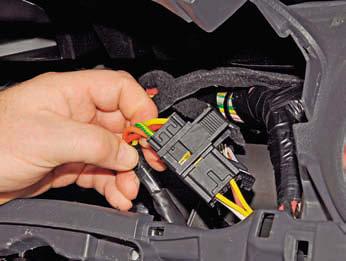 Нажав на фиксатор колодки проводов, отсоединяем колодку от катушки иммобилайзера (для наглядности подрулевые переключатели сняты).