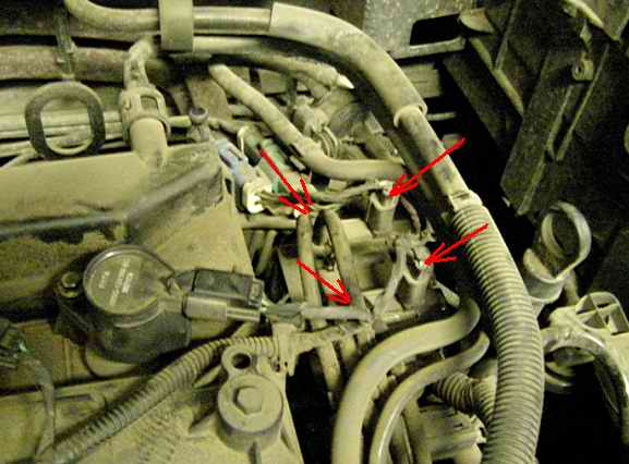3. Снимите два электроразъёма и четыре резиновые трубки с клапанов.