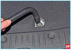 2. Чтобы вынуть запасное колесо из кронштейна, открываем двери багажного отделения и отгибаем клапан в обивке пола багажника.