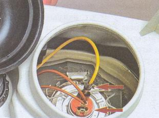 1. Для замены лампы дальнего света снимаем резиновую крышку, отсоединяем наконечники проводов от двух выводов лампы.