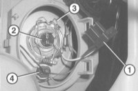 4. Отсоедините стопорную скобу (3) и выньте лампу. (4) – стояночный свет.