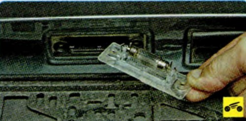 Для замены ламп в фонарях освещения номерного знака выполните следующие операции.