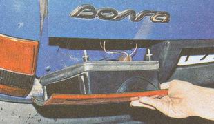 10. Для замены ламп противотуманного света и света заднего хода из полости крышки багажника вынимаем колодки проводов заднего фонаря.