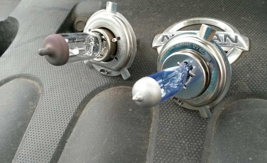 Во время замены лампы головного света на Ниссан Ноут, держите ее за металлический цоколь, а не за колбу.