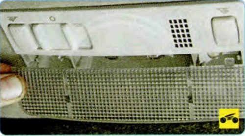 Для замены ламп плафона освещения салона выполните следующие операции.