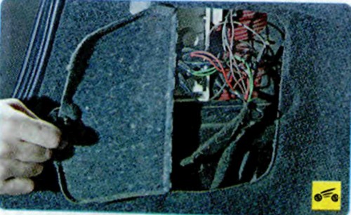 2. ...и откройте клапан в обивке багажника на стороне заднего фонаря.