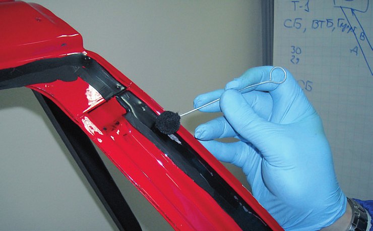 4. Поверхности склейки, на лобовом стекле и кузове, должны быть обработаны праймером. После этого наносим герметик.