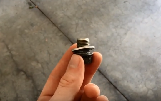 8. Очистите резьбу сливной пробки. Замените ее медное кольцо.