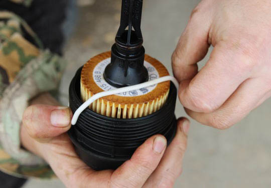 10. Протрите шток, смажьте уплотнительное кольцо нового фильтра моторным маслом.