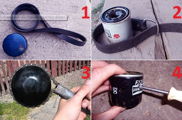 При отсутствии специального ключа для отворачивания масляного фильтра, можно воспользоваться универсальным ключом или съемником. Если такого инструмента нет, пробейте корпус фильтра отверткой и, используя ее как рычаг, отверните фильтр.
