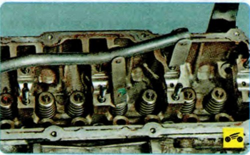 Вам потребуются: все инструменты, необходимые для снятия крышки головки блока цилиндров, а также ключ «на 12», пинцет (или намагниченная отвертка) для извлечения сухарей из тарелок пружин клапанов...