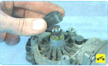 12. При необходимости замены уплотнительной втулки снимите ее с вала моторедуктора.