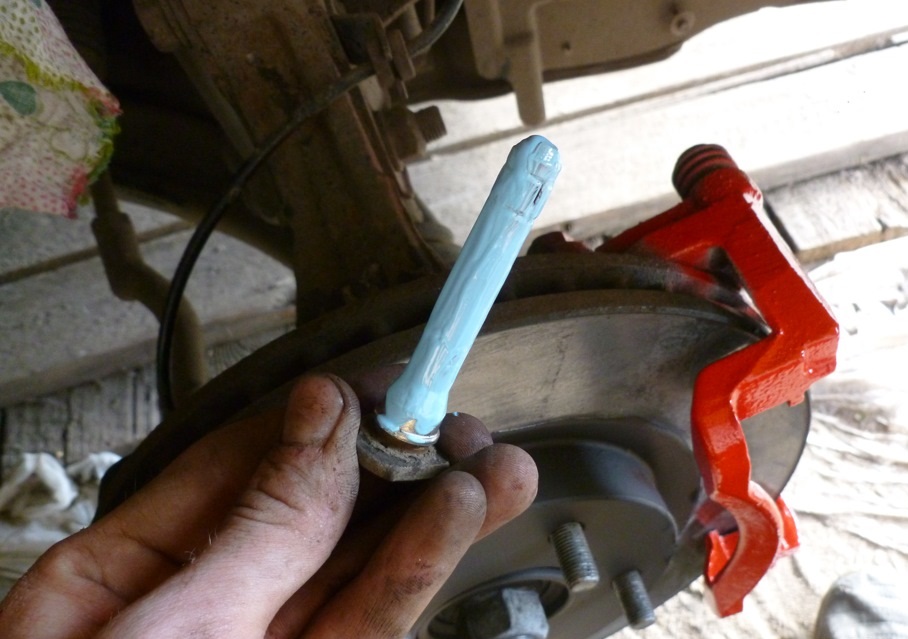22. Смажьте направляющие переднего суппорта Ниссан Х-Трейл специальной смазкой для деталей тормозных механизмов.