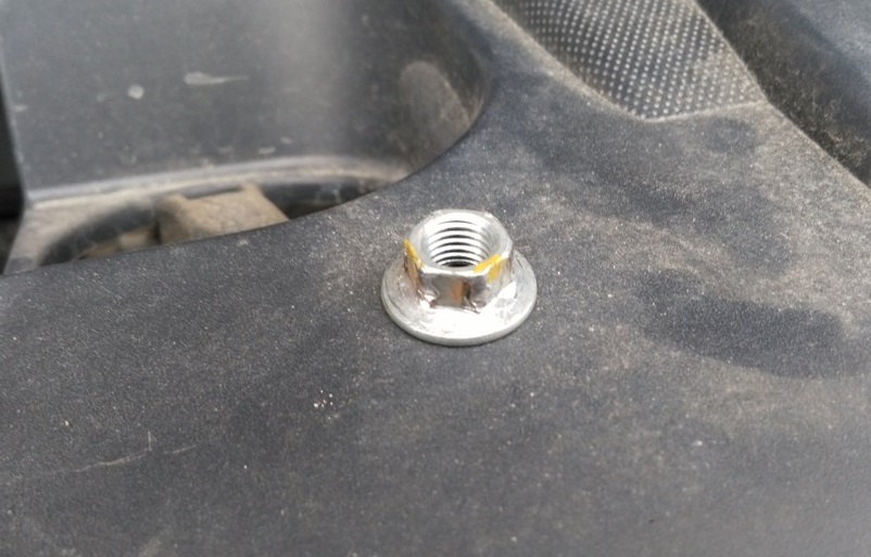 7. В колесной арке, поддев отверткой, вытяните пистоны крепления подкрылка к бамперу. Открутите снизу 2 самореза.
