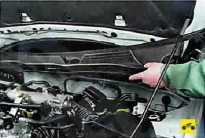 3. Откройте капот и снимите рычаги с осей поводков трапеции стеклоочистителя (см. «Замена рычагов стеклоочистителя ветрового окна»).