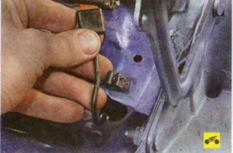 3. Протолкнув в отверстие щита передка держатель колодки жгута проводов токообогрева стекла ветрового окна...
