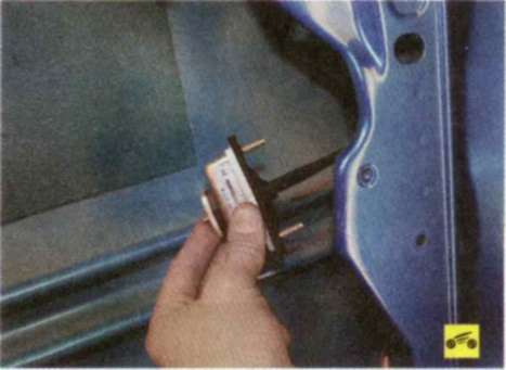 5. ...и снимите ограничитель через технологическое окно во внутренней панели двери.