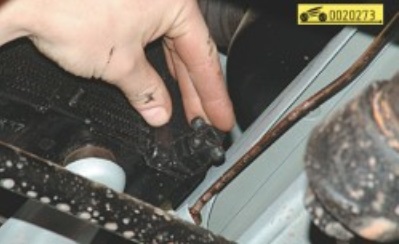 5. Выверните сливную пробку радиатора и слейте жидкость из радиатора.