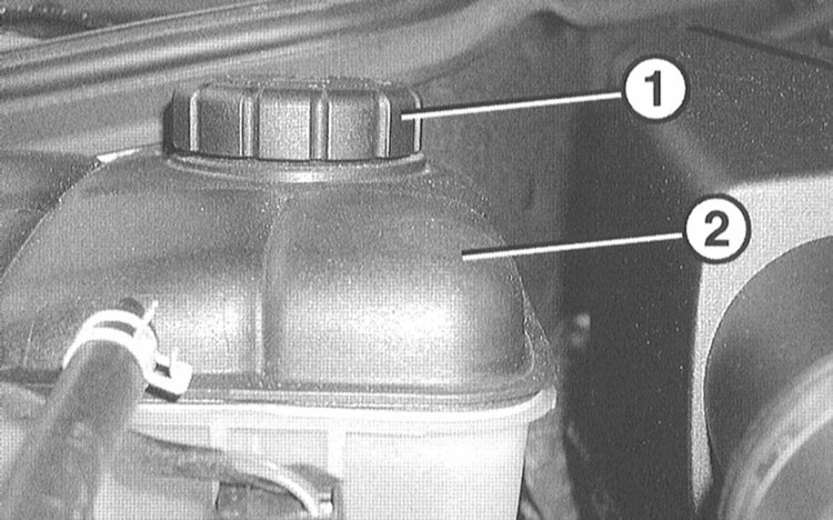 При горячем двигателе перед открыванием расширительного бачка накройте его толстой тряпкой, чтобы исключить ожог вследствие воздействия горячей охлаждающей жидкости и пара. Крышку следует снимать только при температуре охлаждающей жидкости ниже +90°С.