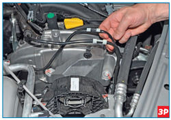 Извлечение трубки подвода топлива к рампе из держателей Lada Largus