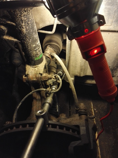 Собираем несколько удлинителей и откручиваем передний болт.