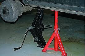 4. Поднимите домкратом необходимое колесо и поставте надежную опору под автомобиль.