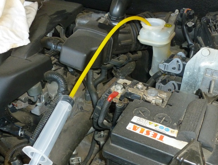 Утапливайте поршень постепенно. Не забывайте контролировать уровень жидкости в бачке тормозного цилиндра, поскольку при утапливании жидкость поднимается, и может вытекать.
