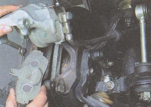 6. Вынимаем из основания скобы Волги тормозные колодки.