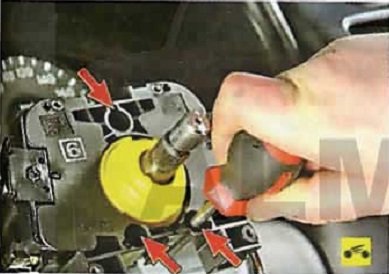 7. ...выверните три винта крепления основания подрулевого переключателя к рулевой колонке...