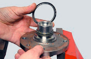 При этом внутреннее кольцо подшипника, расположенное ближе к фланцу ступицы, остается на ступице.