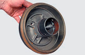 После снятия тормозного барабана не нажимайте педаль тормоза, т. к. поршни могут полностью выйти из колесного цилиндра.