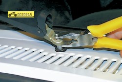 - Беру болгарку и начинаю резать резину…далее сам подшипник с двух сторон…и после чего посадочную основу подшипника, но тут надо осторожно чтобы ось не порезать. Вообщем благополучно все срезав ставлю новый подвесной…заходит кстати легко…чуть сначала постучал по направляющей, а дальше сам пошел, а забыл крепиться он к кузову планкой к которой он тоже прикипел…пришлось срезать болтики успешно позже заменив их на новые. Старые металлические крышечки и пластиковые прокладки сохраняем и ставим на место…перед подшипником и после него.