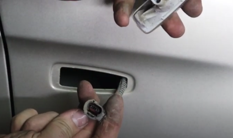 4. Таким образом достаньте повторитель поворота Митсубиси Лансер X из посадочного места в крыле.