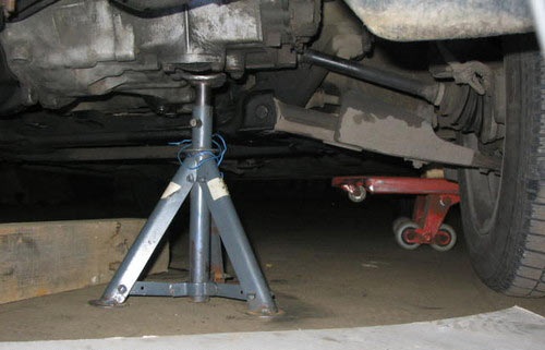 1. Установите под двигатель надежную опору с помощью домкрата или вывесите его грузоподъемным механизмом.
