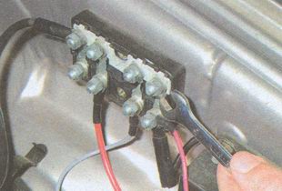 2. Ключом «на 10» отворачиваем две гайки крепления неисправного предохранителя.