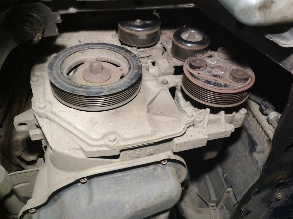 12. Снимите ремень привода вспомогательных агрегатов со шкива генератора, шкива компрессора кондиционера, водяного насоса и шкива коленчатого вала.