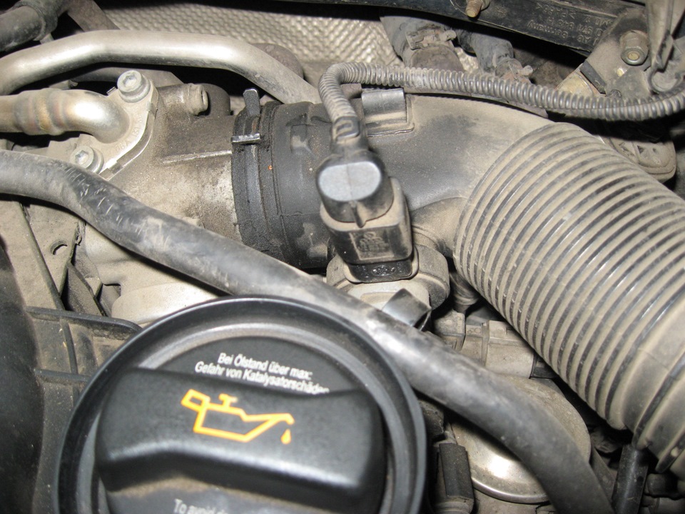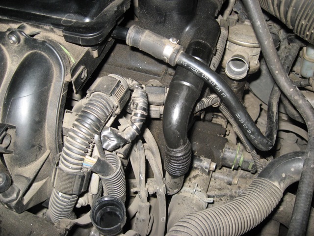 3. Снимаем патрубок вентиляции картера и пластиковый шланг от насоса доп.воздуха.