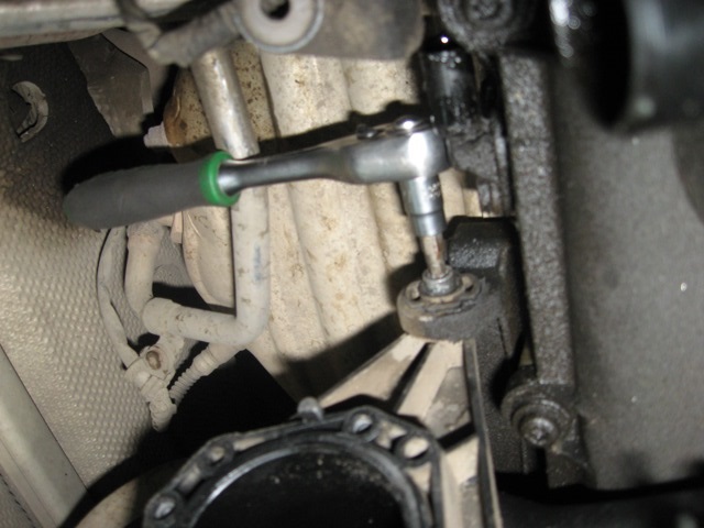 14. Откручиваем первый винт крепления верхнего коллектора к кронштейну на двигателе.