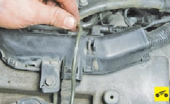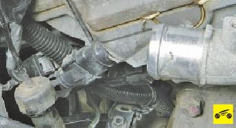 - 17. …и отсоедините шланг от штуцера на крышке головки блока цилиндров.
