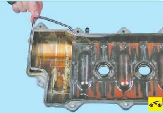 - Дальнейшие операции по замене уплотнения крышки головки блока цилиндров для наглядности показаны на снятом с автомобиля силовом агрегате.