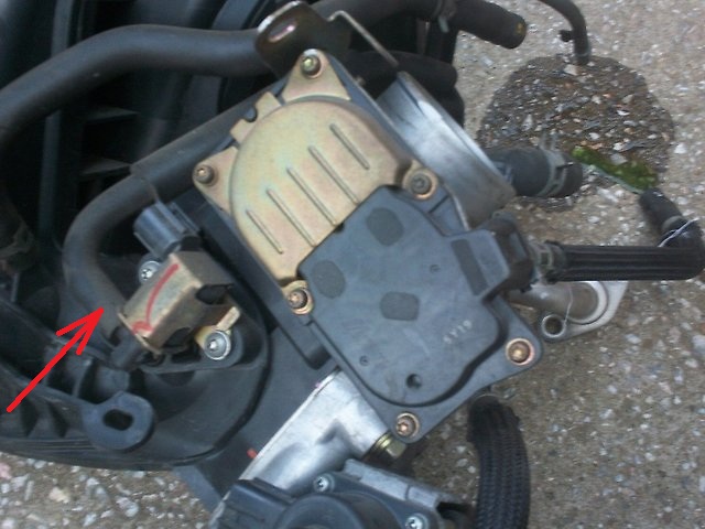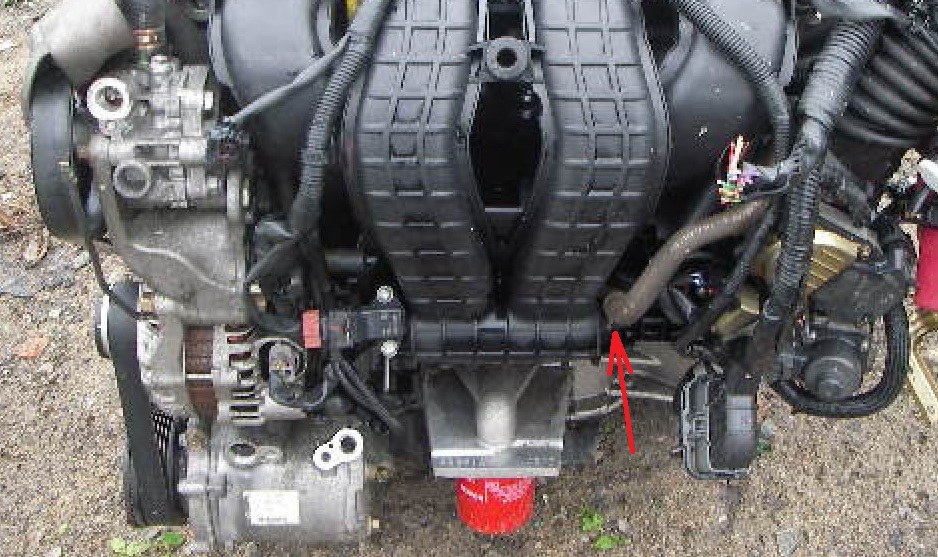 10. Снимите с электромагнитного клапана продувки адсорбера вакуумный шланг системы улавливания паров топлива и отведите шланг от впускного коллектора.