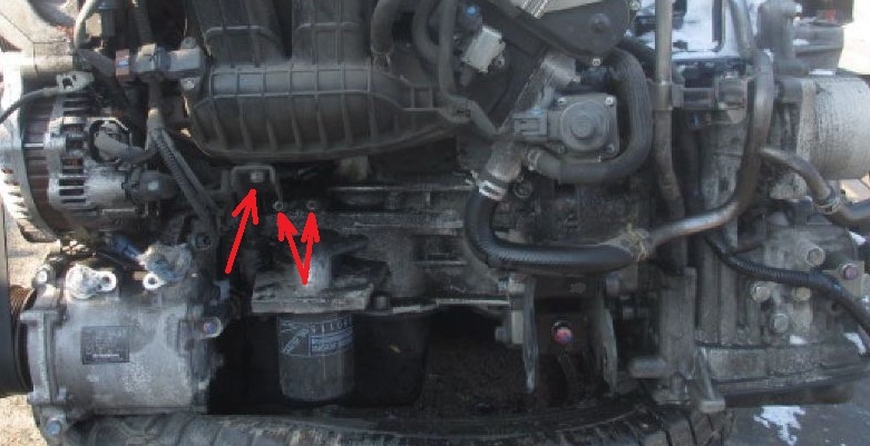 После снятия, с помощью веревки или проволоки подвесьте насос гидроусилителя рулевого управления в сборе вместе со шлангами на кузове в таком месте, где они не будут помехой при снятии и впускного коллектора.