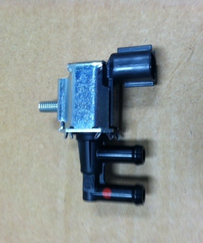 9. Снимите клапан продувки адсорбера, отсоединив от него колодку проводов, отводящий и подводящий шланги и отвернув гайку его крепления.