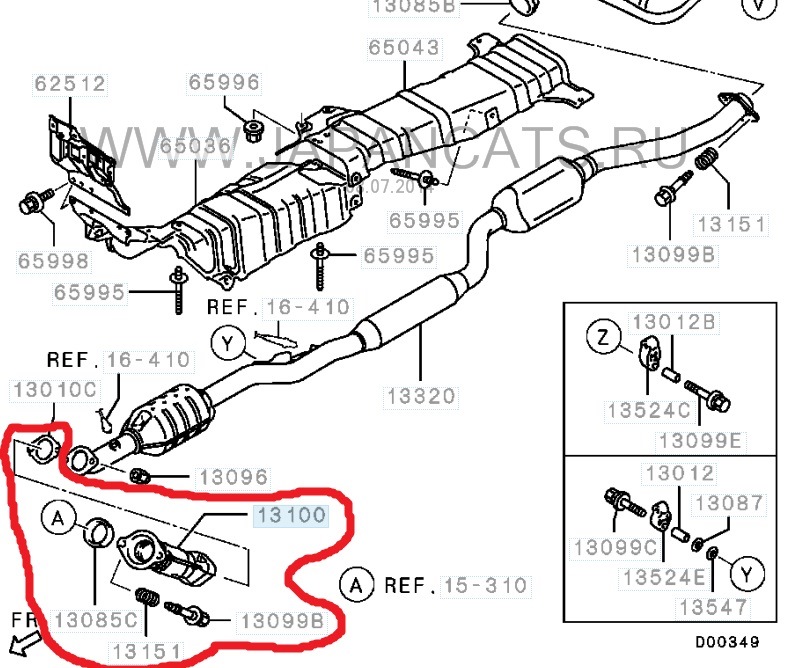 Был очень громкий звук двигателя при оборотах от 1200-3000. Дальше звук движка перекрывал звук этого выхлопа. Не было никаких подтеков, нагаров и т.д абсолютная чиcтая труба. Заменил одно кольцо и прокладку (обведено на схеме).